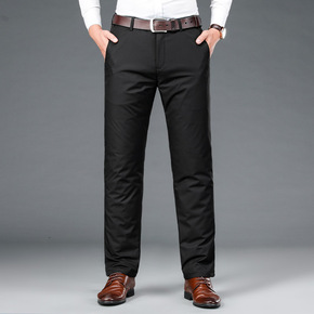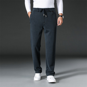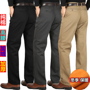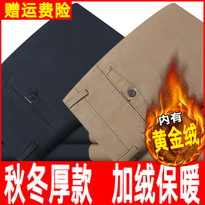 商务休闲裤男士加绒加厚直筒裤冬季保暖男裤中年宽松长...