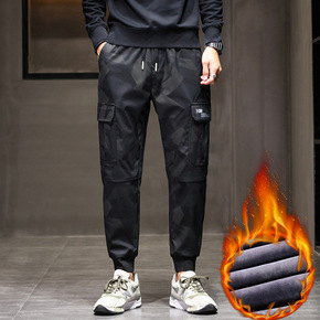 加绒休闲裤男秋冬加厚保暖棉裤束脚多袋工装裤大码运动...