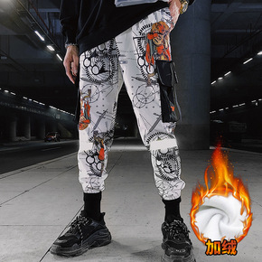 秋冬季工装裤男士潮牌ins宽松束脚机能痞帅加绒休闲...