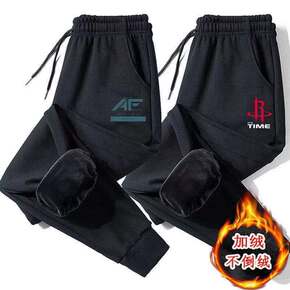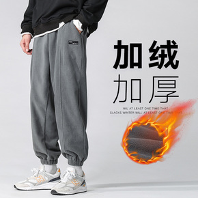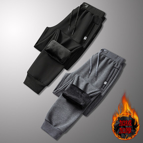 棉质银狐绒大码束脚休闲男款运动裤加绒冬季韩版加厚直...