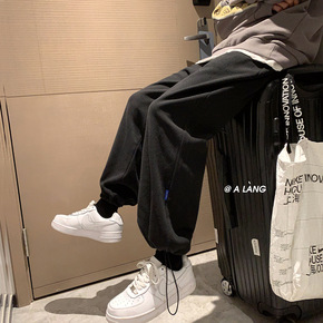 网红同款运动裤男宽松卫裤情侣拉链休闲裤加厚束脚冬季...