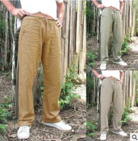 2020日系棉麻松紧裤大码中国风男士休闲裤青年时尚...