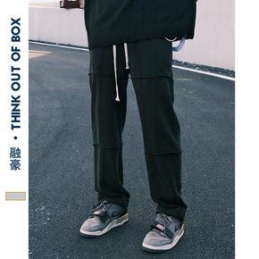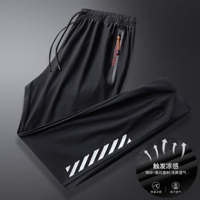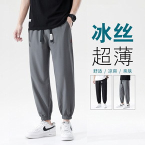冰丝运动裤男2022春夏新款垂感织带抽绳日系潮牌哈...