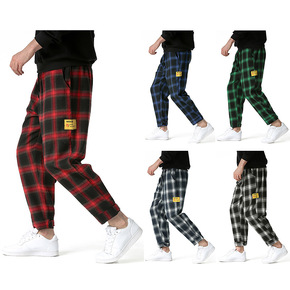 牛油果绿棋盘格裤子高街潮ins美式复古束脚卫裤男春...
