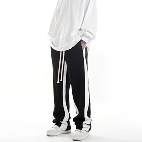 垂感直筒运动裤男春夏侧边条纹撞色帅气百搭阔腿宽松潮...
