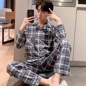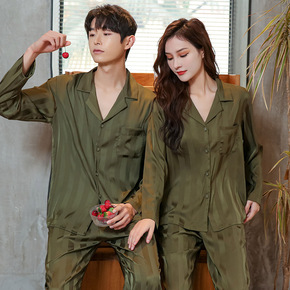 新款春季丝绸睡衣男女士条纹流行红印花舒适情侣仿真丝...