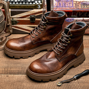 真皮英伦大头马丁靴男高帮机车靴厚底增高牛皮工装靴子...
