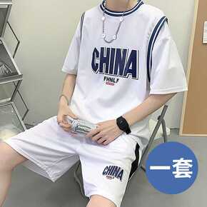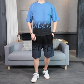 2021外贸男装潮流夏季休闲运动服男装夏装夏天五分...