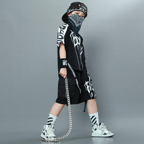 潮牌童装男女儿童嘻哈落肩街舞服装休闲梵文字母印花廓...