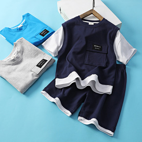 2021夏季新款韩版儿童假两件运动篮球套装男女童撞...