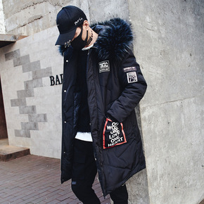 批发冬季中长款棉衣加厚外套潮嘻哈连帽大毛领棉服 W...