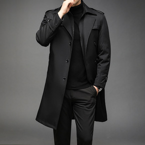 暗黑风大口袋装饰翻领长款棉衣男插肩袖宽松休闲棉服夹...