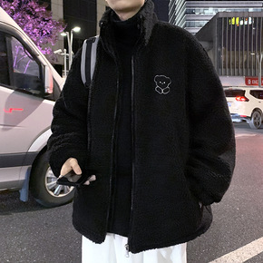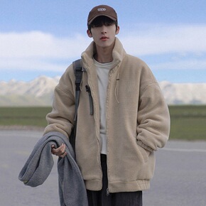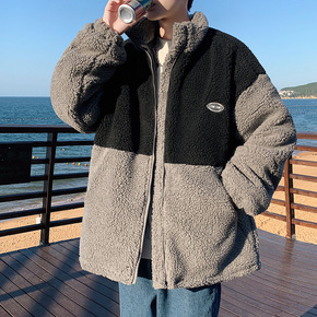爆款韩系羊羔毛颗粒毛绒加厚冬季新潮男士保暖棉袄衣服...