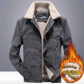 加绒加厚夹克男新款爸爸装保暖立领中老年短款棉衣外套...