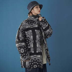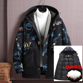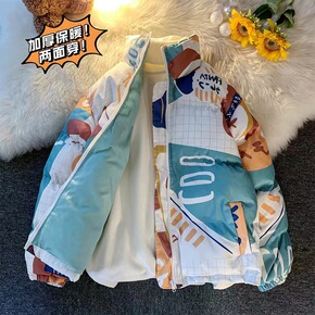 2021冬季棉服男士潮牌宽松港风百搭印花立领双面穿...