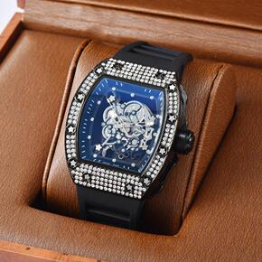 2022新款镂空理查德石英表男酒桶形时尚自动腕表现...