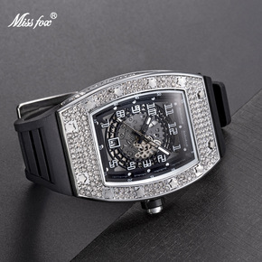 MISSFOX手表 欧美爆款个性满钻酒桶型硅胶带石...