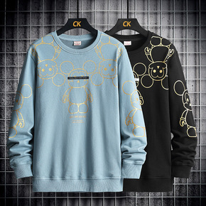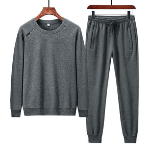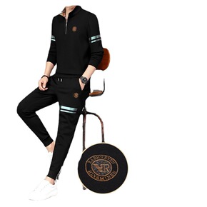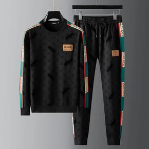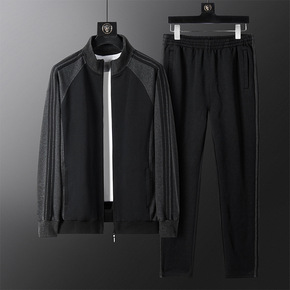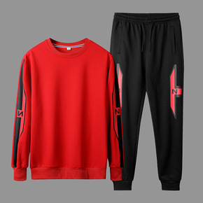 跨境男2021秋季款男装大码圆领潮牌套装春秋休闲装...