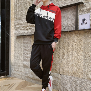 春秋新款插色连帽卫衣套装校风男生帅气青少年男士休闲...