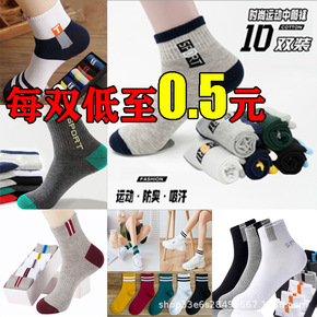 袜子男士春夏款潮流运动纯色短款隐形船袜吸汗长筒中筒...