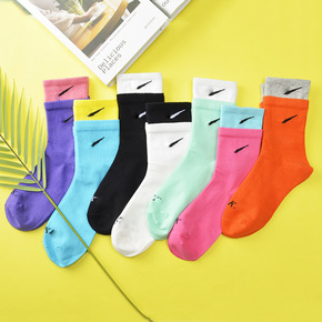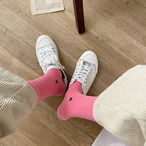 春夏情侣款刺绣纯色ins潮韩版袜袜子男中筒袜街头克...