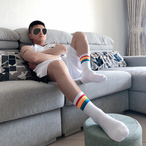 嘻哈袜子长袜男潮中高筒街头欧美潮流韩版学院风个性篮...