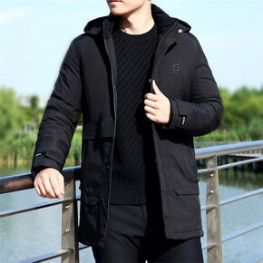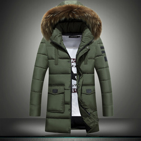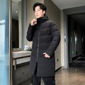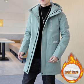 跨境外贸2021冬季新款男士棉衣中长款连帽中青年加...