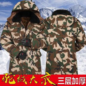 工作服棉袄男迷彩冬季加绒加厚棉大衣中长款防风抗寒大...