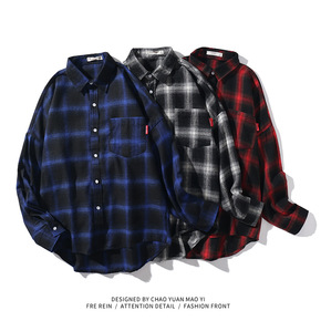 秋季新品 欧美男式休闲格子长袖衬衫宽松复古经典格纹...