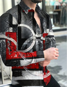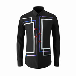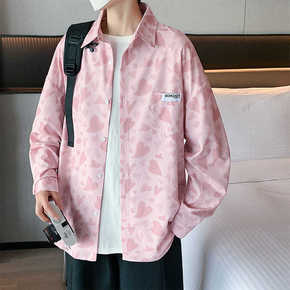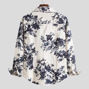 外贸跨境男装长袖衬衫英伦风青年时尚休闲3D数码印花...