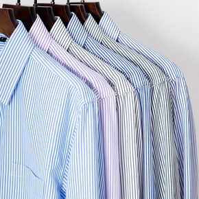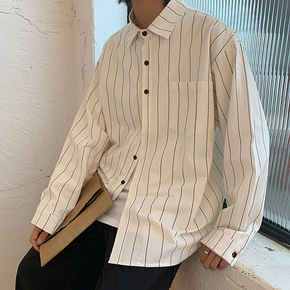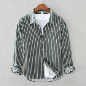 OKONKWO 新款竖条纹男式衬衫 美式复古男装工...
