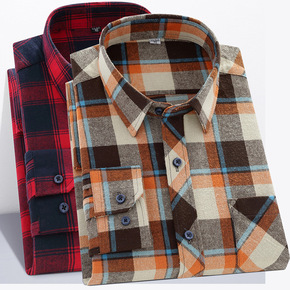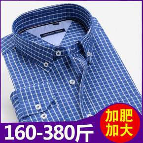 【大码】男士纯棉磨毛格子衬衣四季翻领青年方格休闲现...