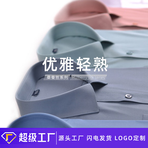 春夏桑蚕丝衬衫男款免烫长袖高档工装工作服修身轻奢衬...