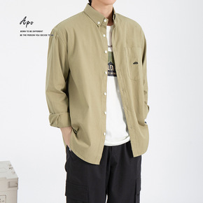 APO男装I纯棉长袖衬衫男2022春夏新款宽松休闲...