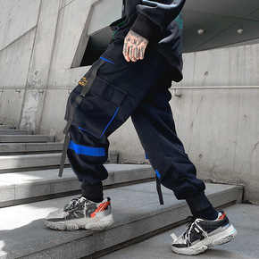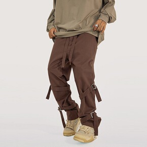 侃爷同款美式绑带工装裤男高街嘻哈vibe风炸街情侣...