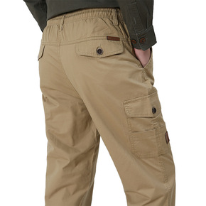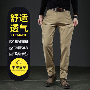 高端棉质卡其色休闲裤男士直筒宽松秋季百搭全棉春秋款...