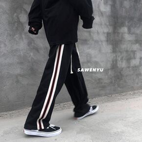双杠条纹休闲男裤2022国潮情侣嘻哈经典搭直筒运动...