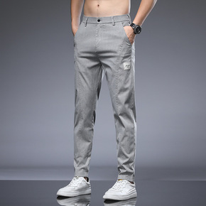 2022春装新款大码刺绣西裤男修身质感休闲长裤男士...