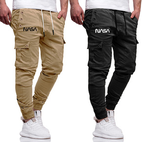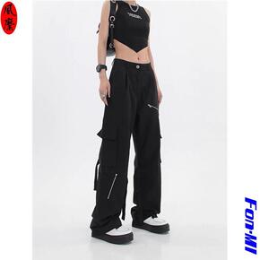 高街嘻哈拉链装饰多口袋工装裤男夏新款高腰宽松直筒休...