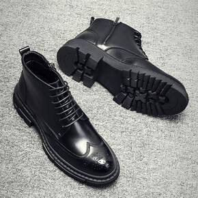 男士高帮皮鞋冬季加绒马丁靴男休闲韩版尖头夜店男靴子...