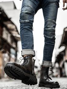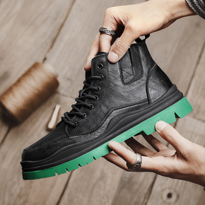 马丁靴男高帮加绒秋冬季男士工装军靴子中帮英伦风切尔...