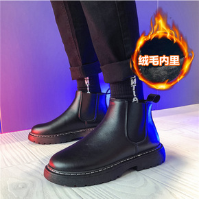 2022冬季新款加绒男士休闲时尚切尔西短靴筒靴黑色...