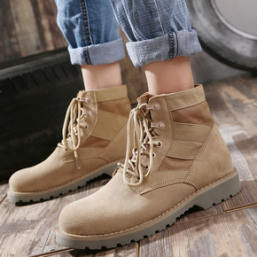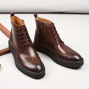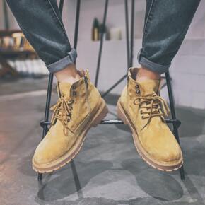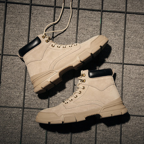 2020秋季工装男靴圆头纯色加绒保暖系带户外男士英...