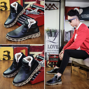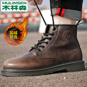马丁靴男高帮英伦风韩版工装潮鞋真皮中帮棉鞋男鞋冬季...