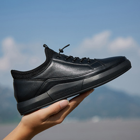 厨师鞋男秋季防水防滑厨房男士小黑工作休闲皮鞋透气软...