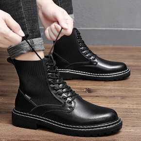 2021秋冬新款男鞋休闲大码跨境码丁靴 高帮袜口...
