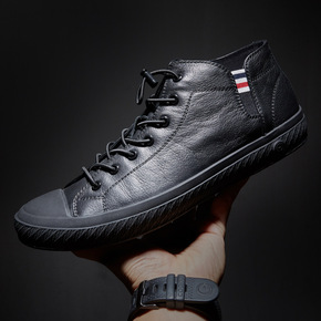 秋冬新款个性休闲鞋潮流真皮高帮鞋男松紧带英伦潮牌加...