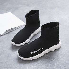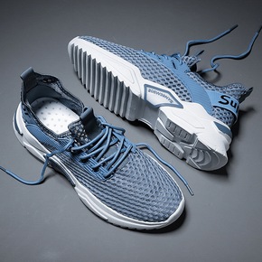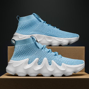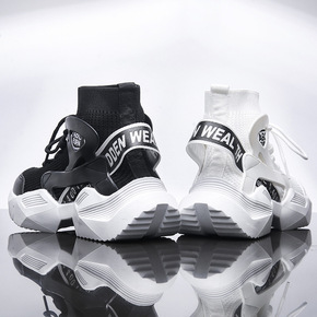 袜子鞋高帮男鞋秋季透气飞织网面运动百搭厚底增高老爹...