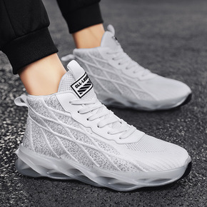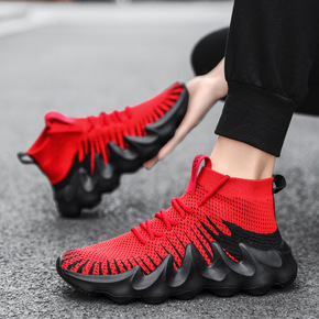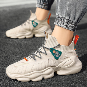 2021春季新款男鞋高帮飞织网面休闲鞋潮流复古袜子...