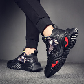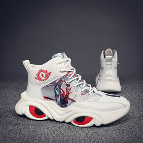 狐奴国潮男鞋高帮秋季新款运动休闲鞋男士老爹鞋厚底欧...